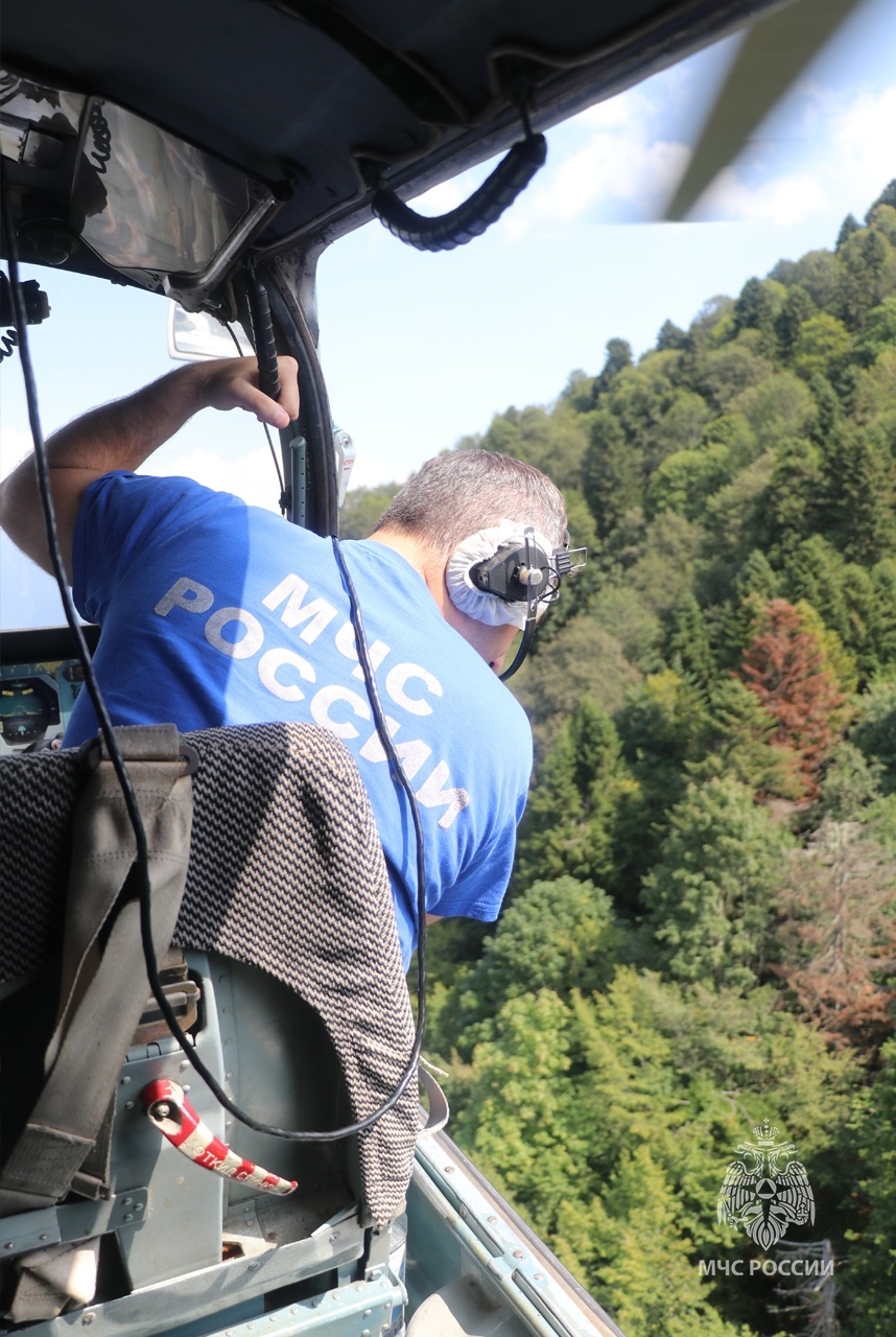 Было принято решение о привлечение к поиску и спасению вертолет авиационного звена (на Ка-32, Ми-8, г. Адлер) ФГБУ «ЮЖНЫЙ АСЦ МЧС России». На протяжении двух часов экипаж вертолета Ка-32 и спасатели ЮРПСО МЧС России проводили поиск пропавшего в горах туриста с борта воздушного судна. Обследована горно-лесная местность от Краснополянской ГЭС до южного плеча хребта Аибга. В результате визуального поиска с воздуха 58-летнего пропавшего сочинца обнаружить не удалось.